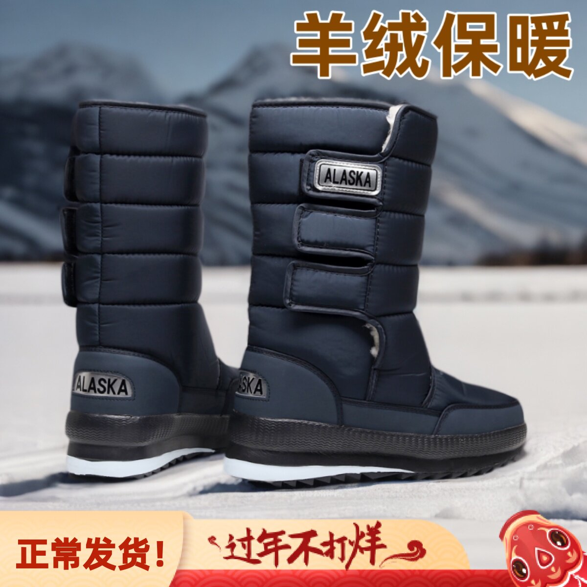冬季加厚雪地靴东北加绒保暖高筒男士防滑防水中老年大棉鞋女靴子
