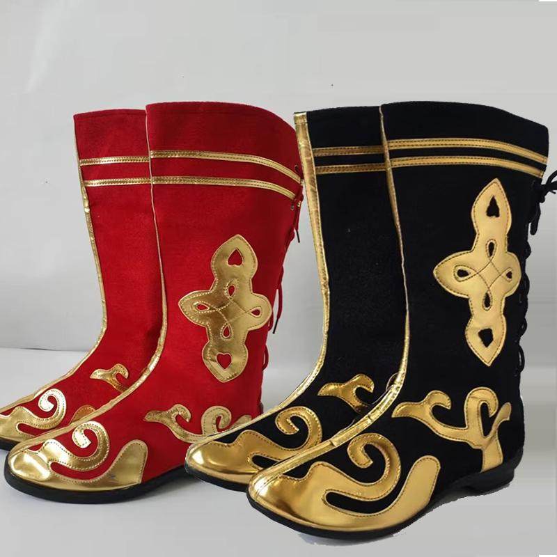 民族舞靴子蒙古舞蹈鞋演出表演鞋女童男高筒靴蒙古族藏族新疆舞鞋