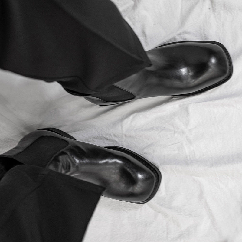 大牌走秀款方头切尔西靴套筒靴厚底高筒男靴子高帮鞋真皮男鞋小众