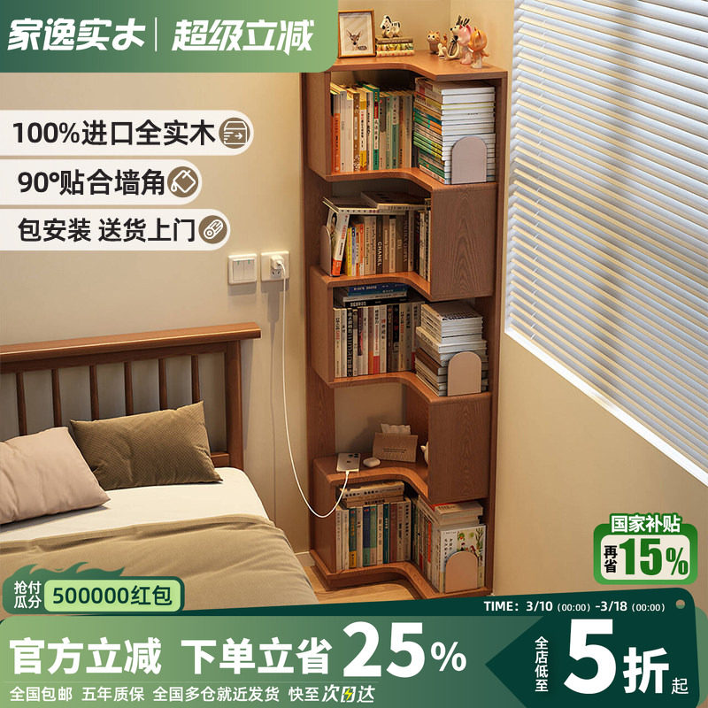 实木转角书架落地置物架一体靠墙角柜储物柜客厅简易床头拐角书柜