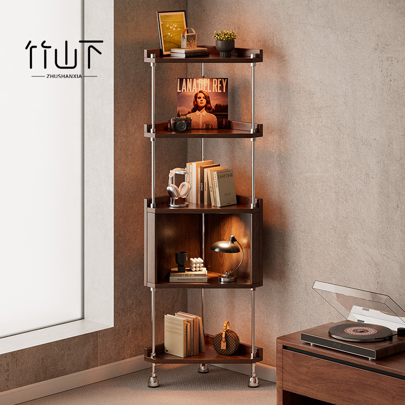 中古风角柜客厅转角置物架轻奢高级感墙角创意复古铁艺书本收纳柜