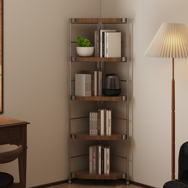 实木转角书架客厅高级感墙角柜落地置物架多层靠墙拐角绘本收纳架