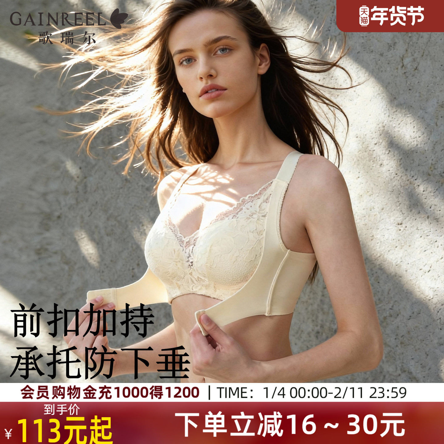 调整型前扣文胸歌瑞尔无痕美背内衣女聚拢防下垂收副乳无钢圈胸罩