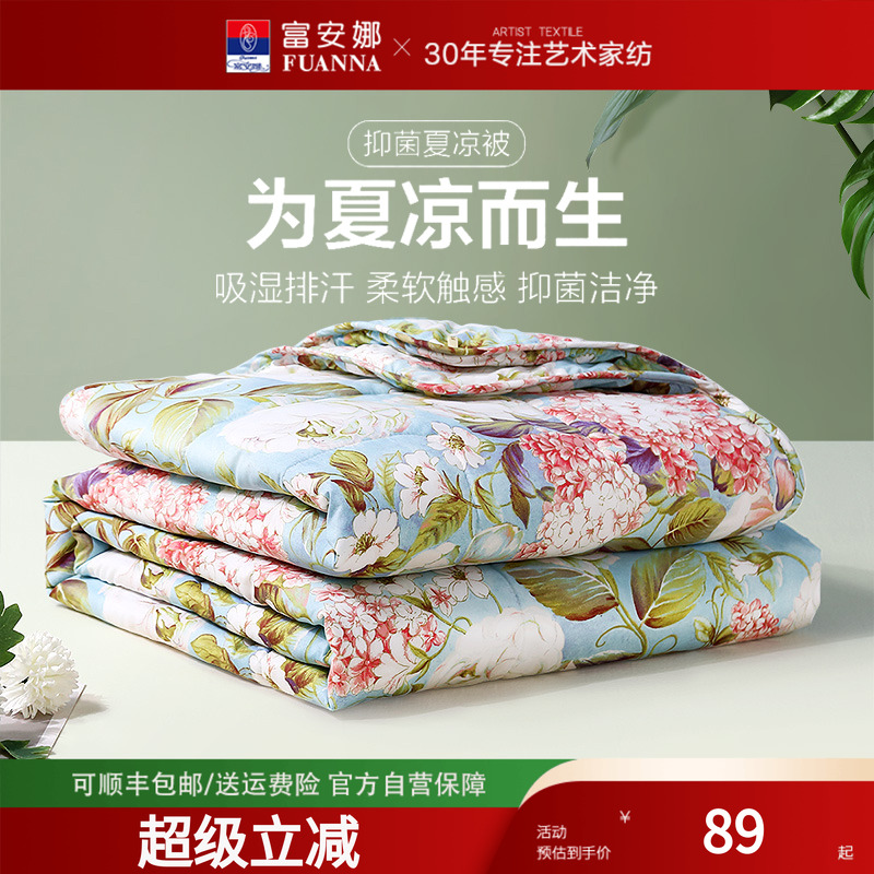 富安娜家纺空调被可水洗七孔抗菌夏凉被夏被春秋被芯夏季薄款被子