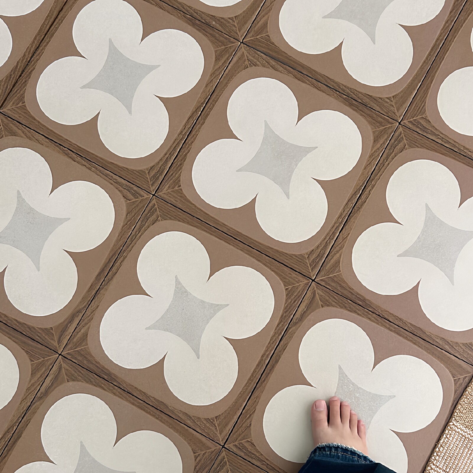 复古南法花砖厨房阳台卫生间瓷砖改造防水免洗皮革地垫超薄进门垫