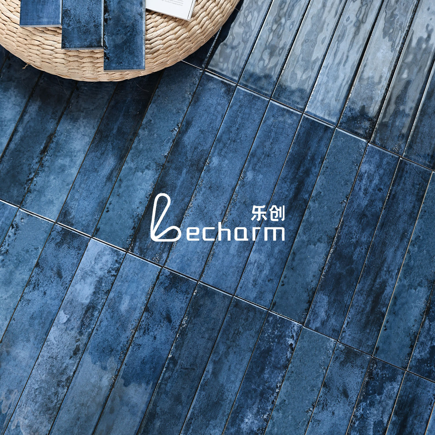 蓝色渐变长条墙砖卫生间浴室瓷砖厨房餐厅吧台背景复古亮面手工砖