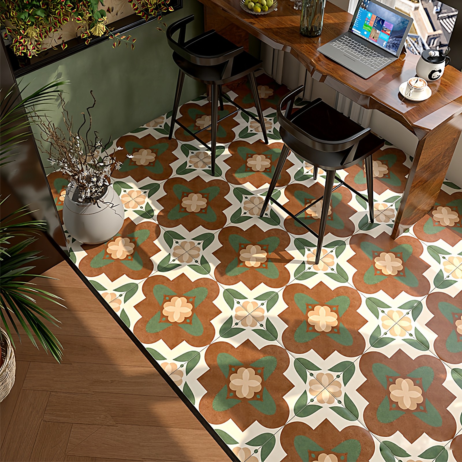 南洋风复古自粘地板贴厨房卫生间瓷砖防水防滑地贴民宿阳台翻新贴