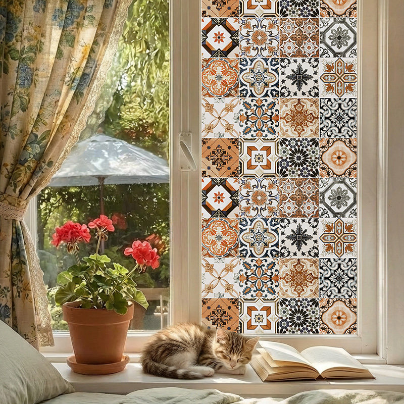 法式复古瓷砖贴纸厨房防油贴纸卫生间墙面遮丑墙贴中古风橱柜遮丑