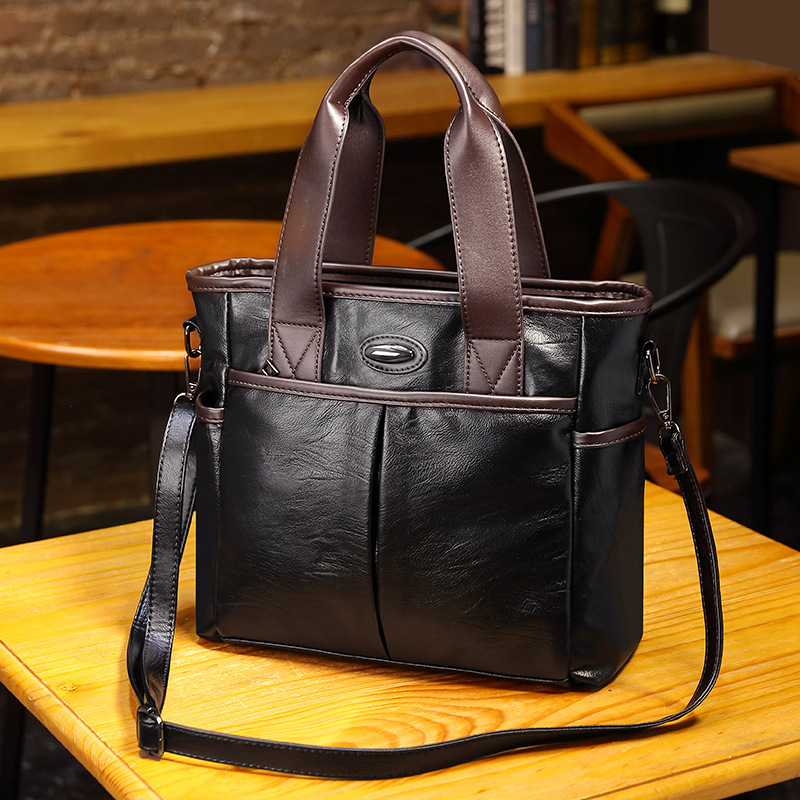 外贸出口黑色大容量托特包简约百搭手提包通勤逛街实用女包手提袋