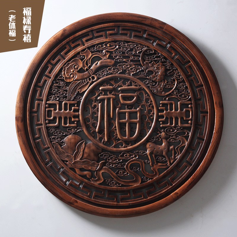 东阳木雕壁挂隔断镂空雕花中式福字挂件木制室内圆形壁饰实木刻字