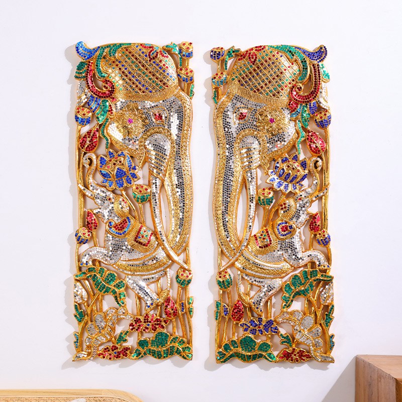泰国实木雕壁挂泰式美容院酒店餐厅背景墙大象玄关装饰镂空雕花板