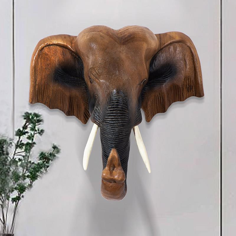 泰式木质大象头墙上装饰品挂件泰国客厅餐厅东南亚风墙面木雕壁挂