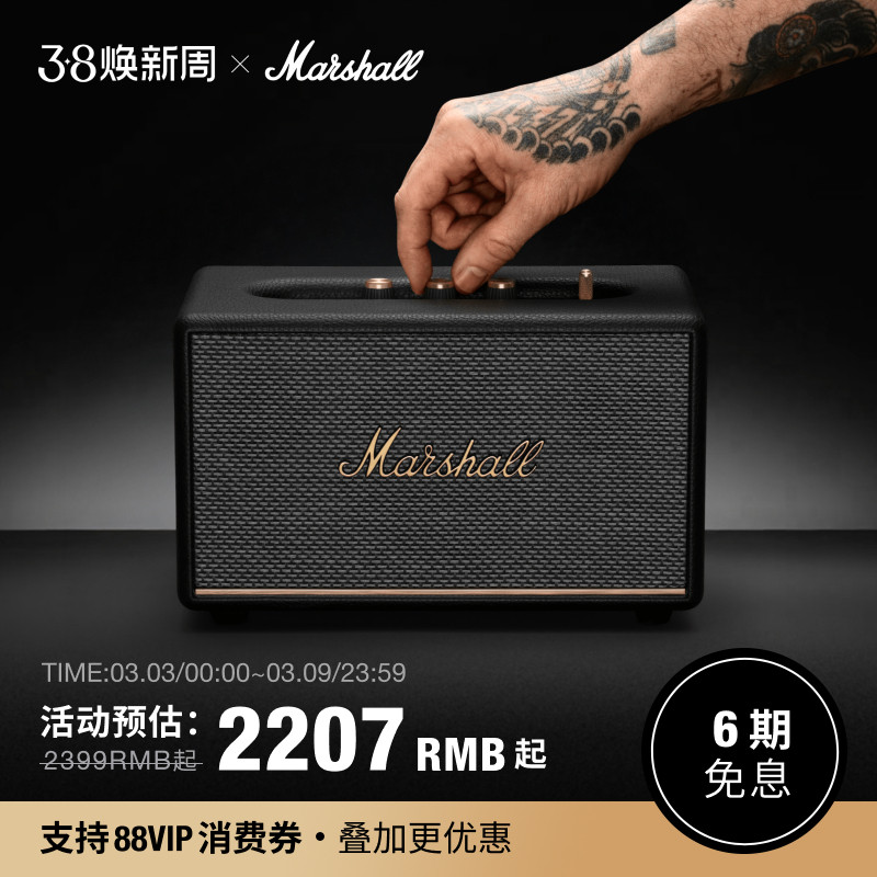 MARSHALL ACTON III马歇尔蓝牙音响家用音箱大音量低音炮生日礼物
