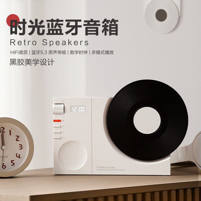 时光黑胶唱片机复古蓝牙音响音箱小型无线时钟高音质家用超重低音