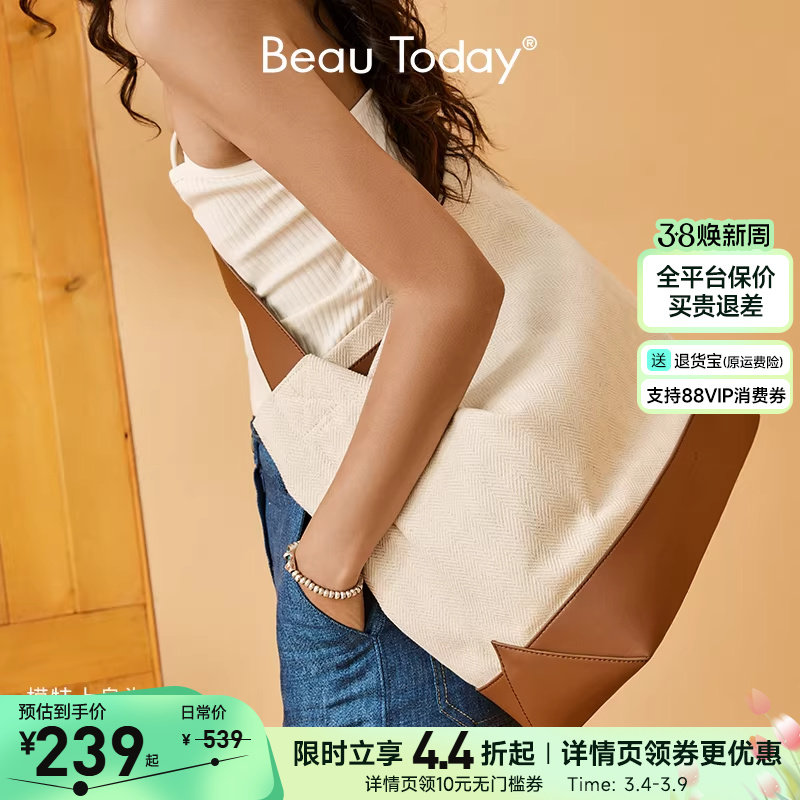 【露思同款】BeauToday斜挎帆布包通勤女大容量单肩托特包包撞色