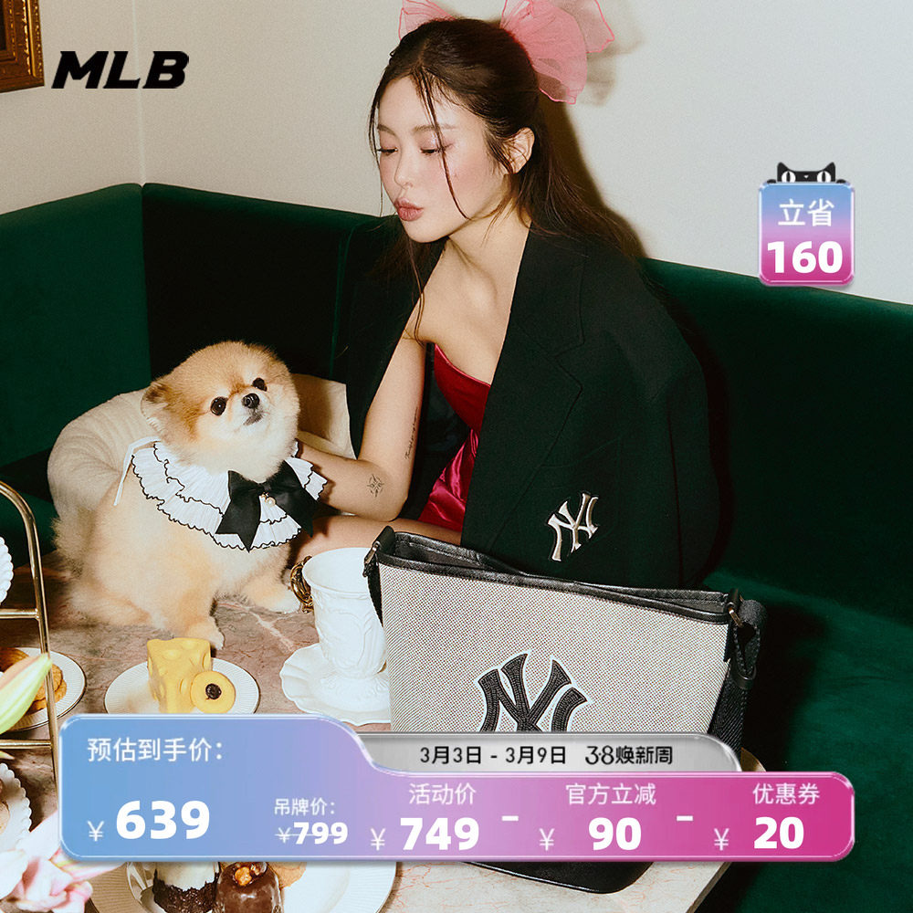 MLB官方 男女同款学院风单肩斜挎时尚帆布水桶包秋冬BMS07