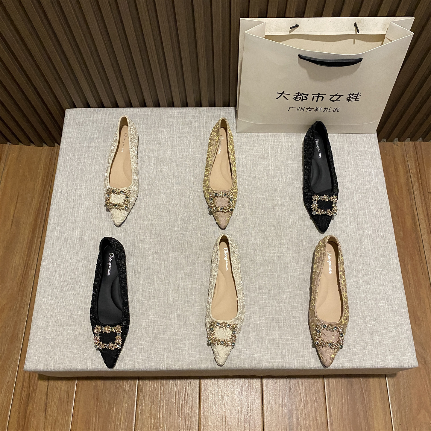 法式尖头单鞋女2025春季新款软皮软底方扣浅口温柔平底仙女风瓢鞋