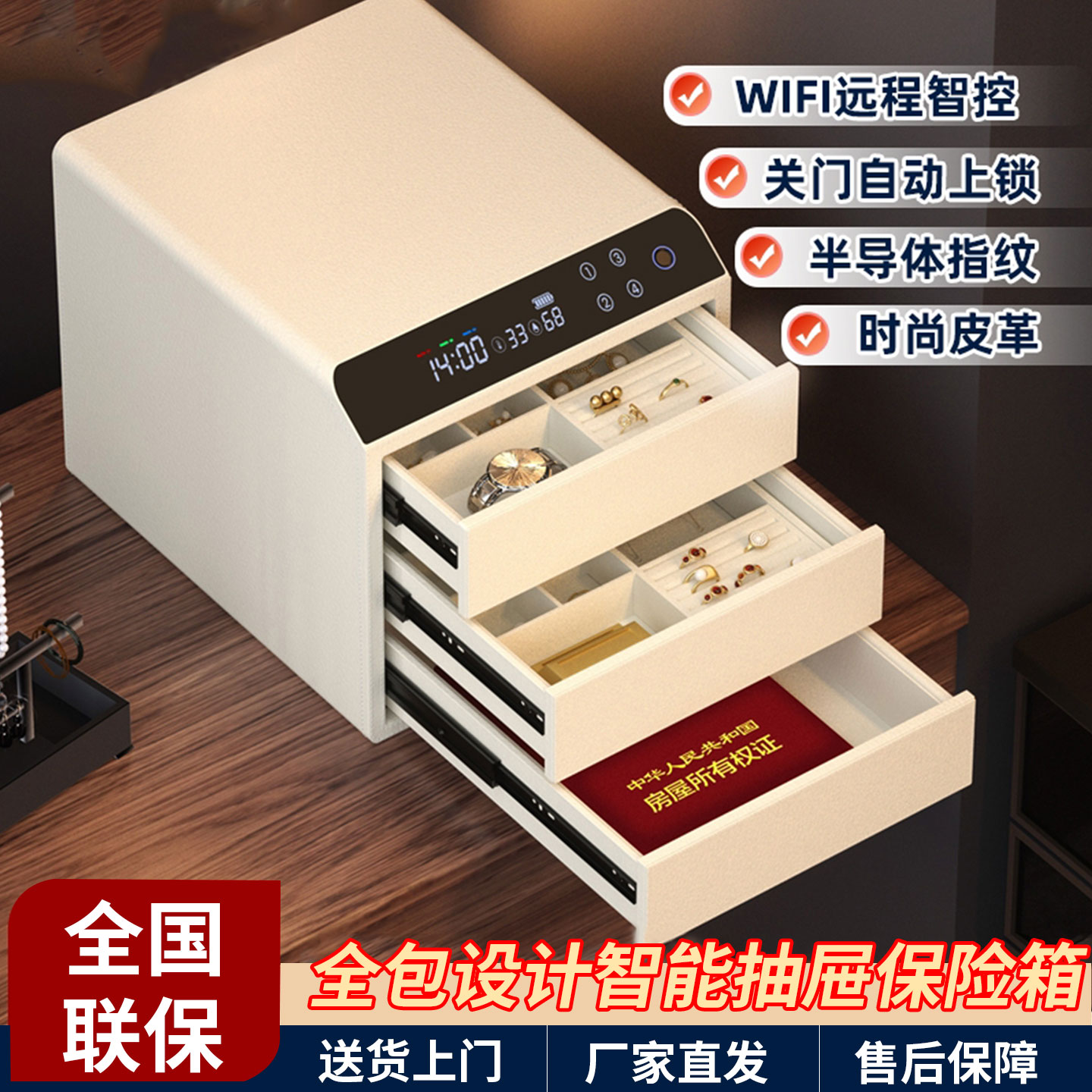 指纹保险柜家用2025新款首饰收纳盒高档精致皮艺抽屉式保险箱防盗