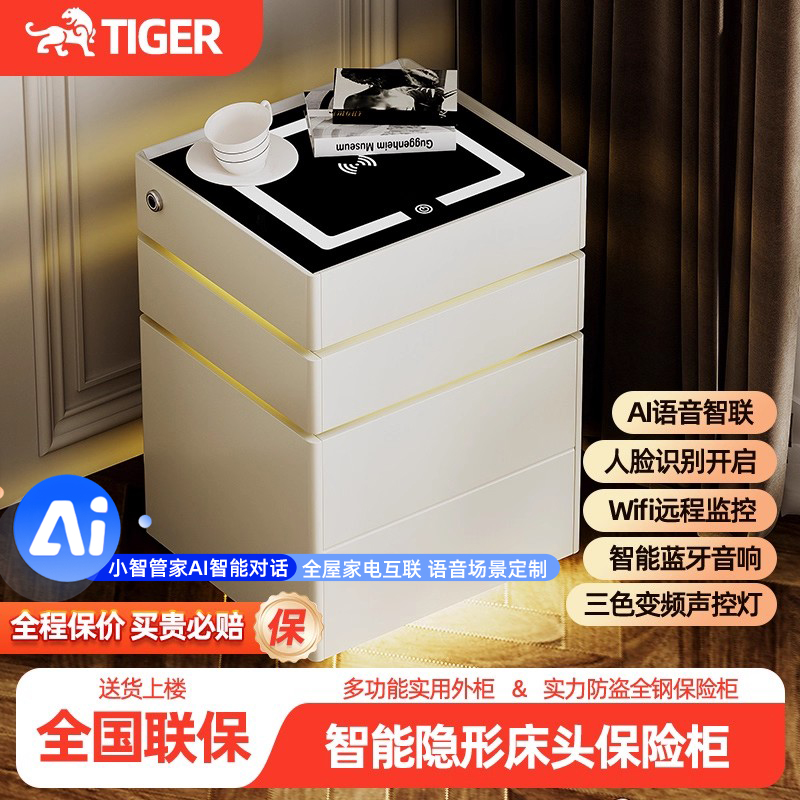 【新品上线】虎牌保险柜 家用小型指纹保险柜床头柜 WiFi智控防盗收纳简约风格床头保管箱