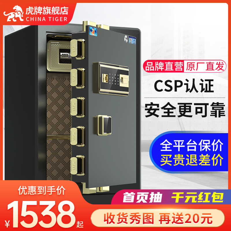 虎牌CSP认证指纹保险柜家用60型 大型智能防盗保险箱办公全钢新品