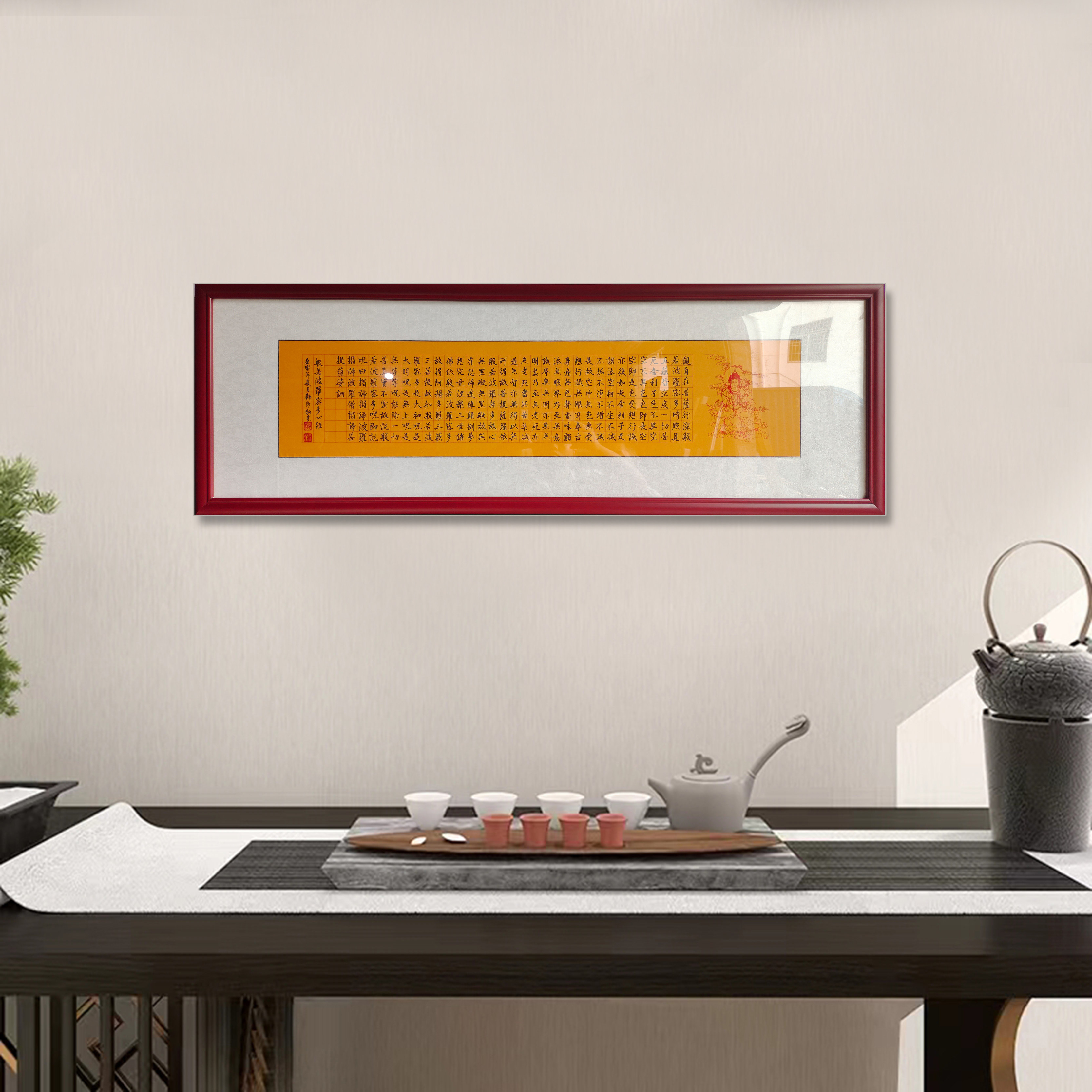 手写心经字画客厅挂画佛堂茶室禅意装饰画横幅卷轴楷书法作品装裱