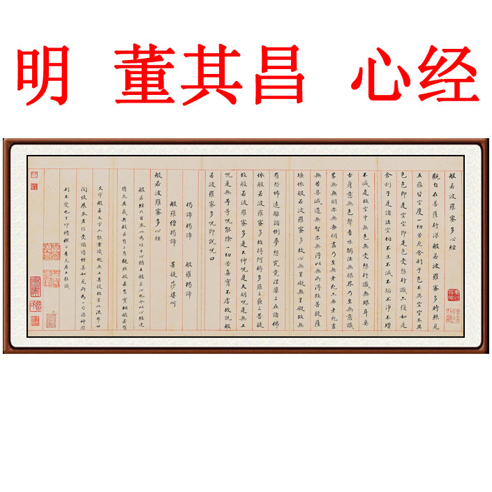 董其昌心经字画客厅挂画书法作品禅意卧室横幅挂字非手写行书卷轴