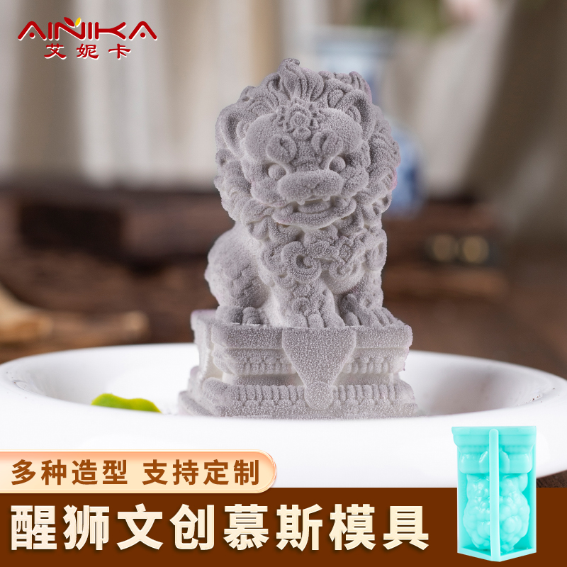 石狮子慕斯模具硅胶定制甜品酒店餐厅中式古风熊文创立体醒狮动物