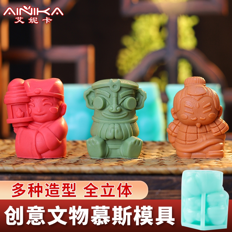 文物亚丑钺慕斯模具硅胶三星堆兵马俑青铜器巧克力烘焙蛋糕定制磨