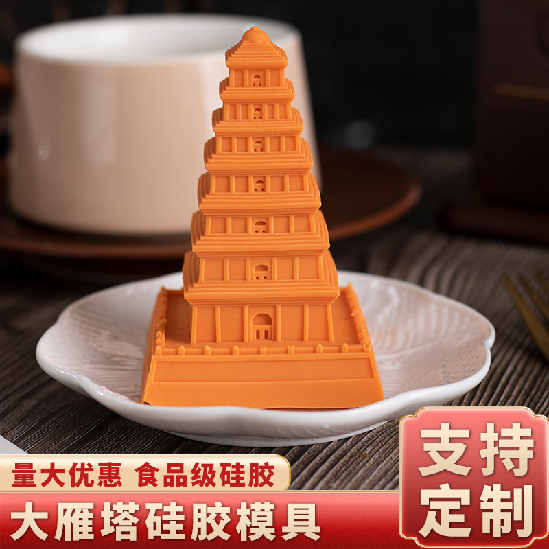 西安大雁塔慕斯模具硅胶食品级定制国风糕点立体巧克力烘焙蛋糕磨