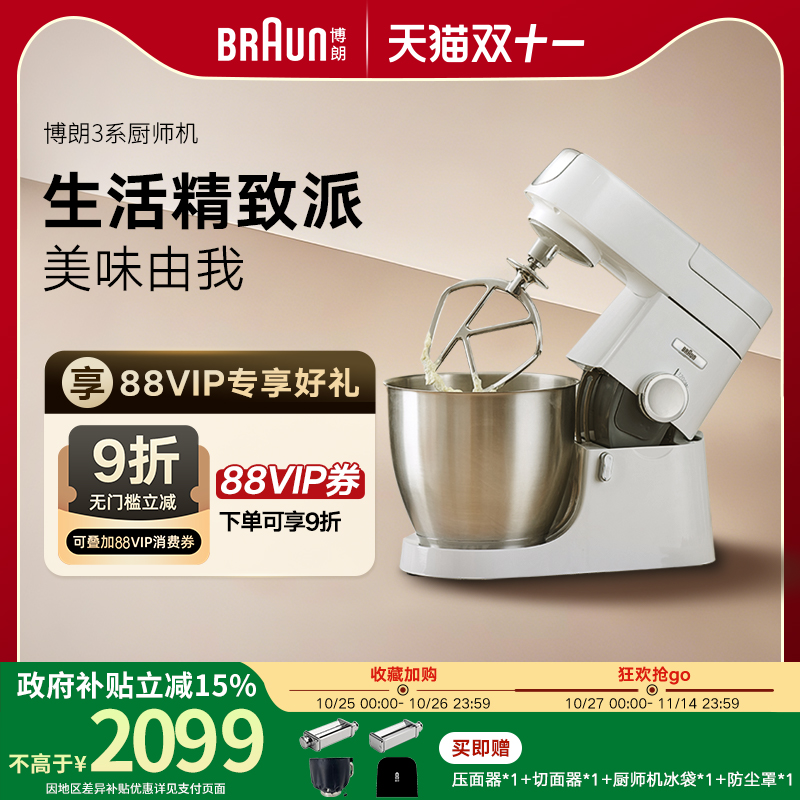 Braun博朗厨师机家用揉面机打蛋器和面机自动烘焙搅面机KBL4300