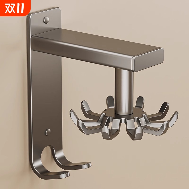 厨房挂钩壁挂式置物架旋转收纳架勺子铲子挂架免打孔架子移动吸盘