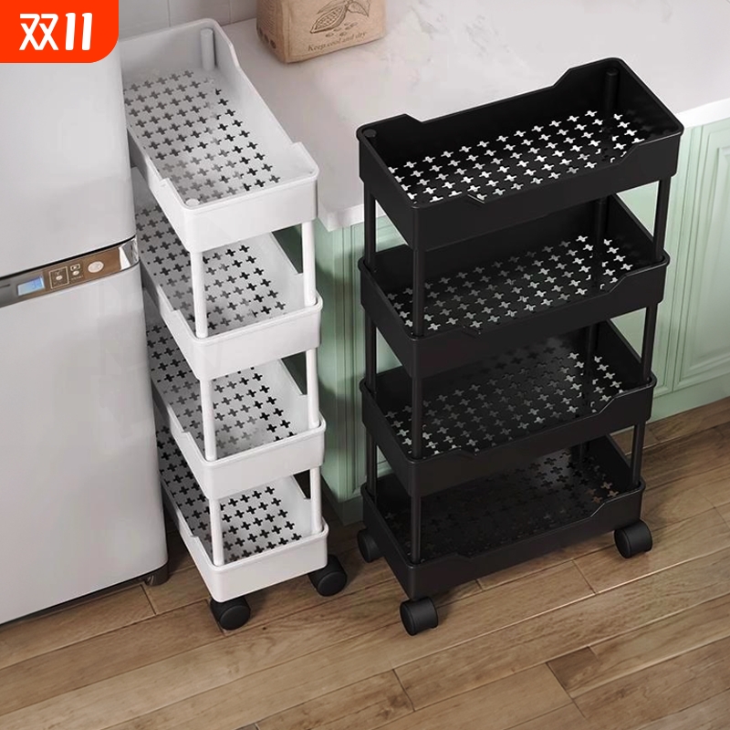 厨房夹缝置物架冰箱侧面抽拉小推车可移动卫生间窄缝隙落地收纳柜
