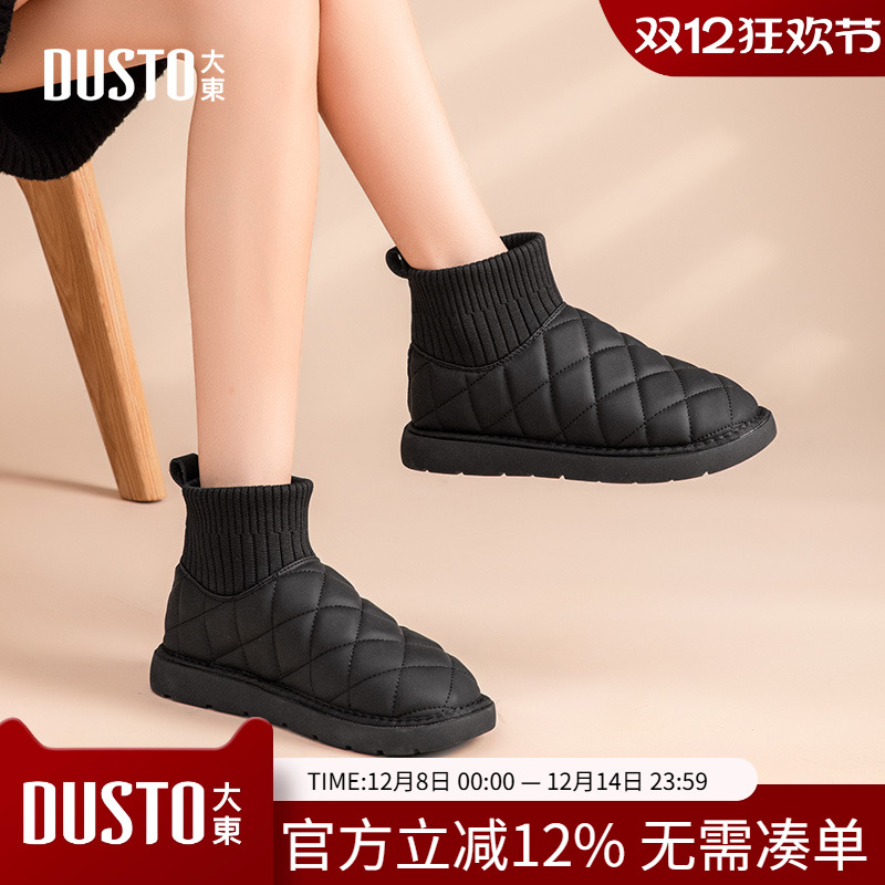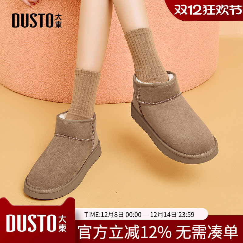 DUSTO大东雪地靴女鞋冬季时尚舒适套脚加绒圆头厚底保暖短靴0706