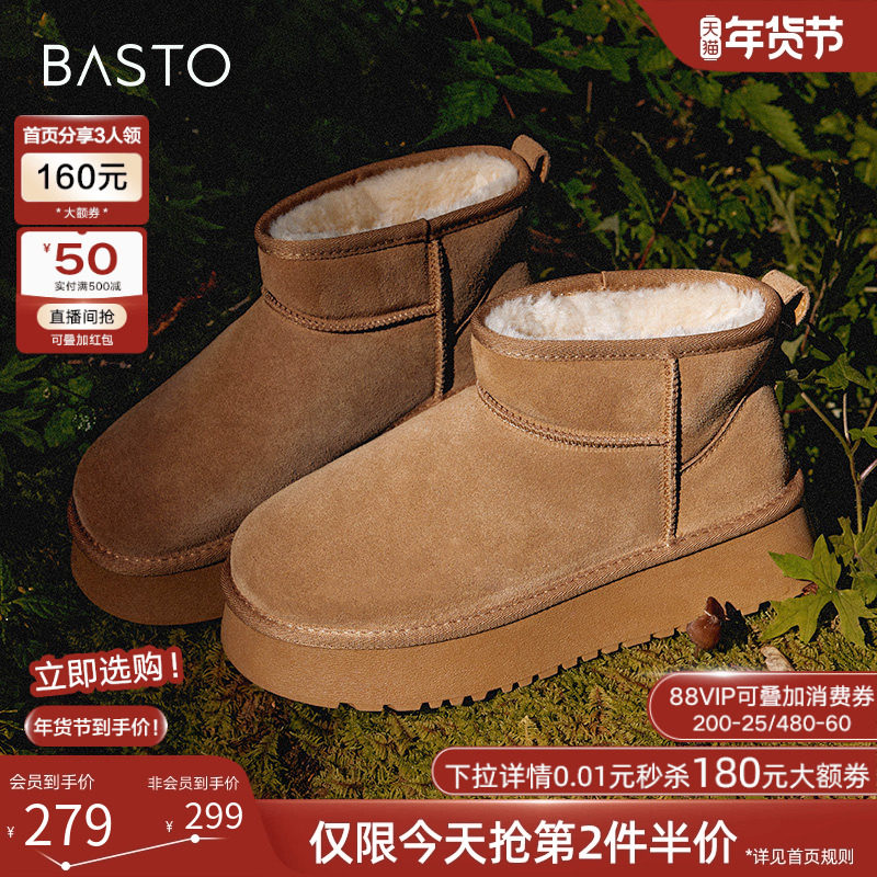 人本短款雪地靴女款2026新款冬季加绒加厚女鞋棉鞋官方旗舰店正品
