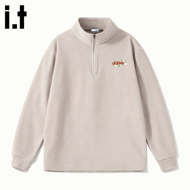 it izzue男士打底衫内搭秋冬季高领秋衣男款双面绒长袖半拉链T恤