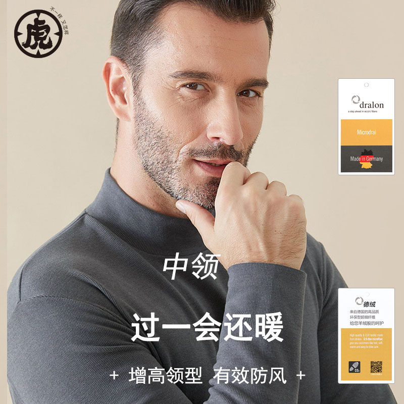 简云德绒发热半高领保暖上衣男士加绒内搭打底衫蚕丝内衣羊毛秋衣