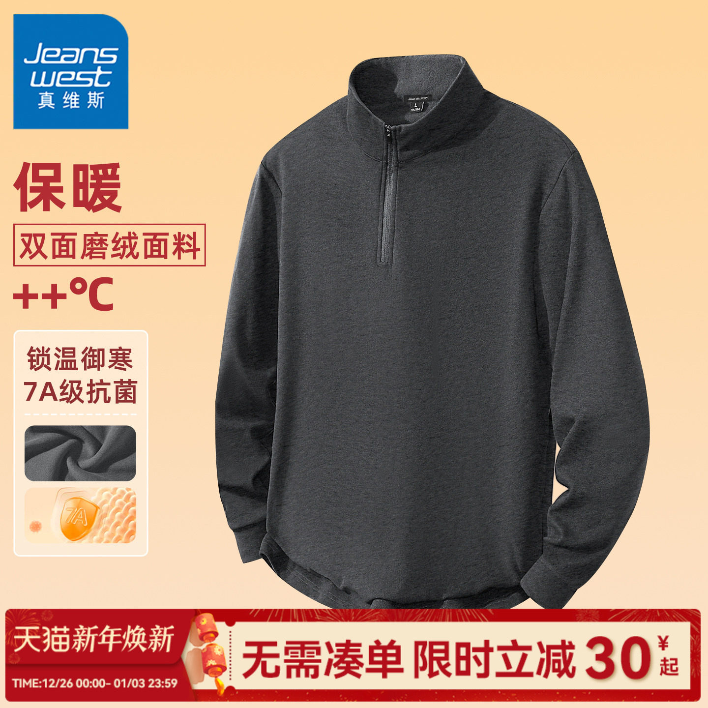 GV真维斯半高领秋衣男款打底衫男秋冬季加绒保暖内衣男士长袖t恤C