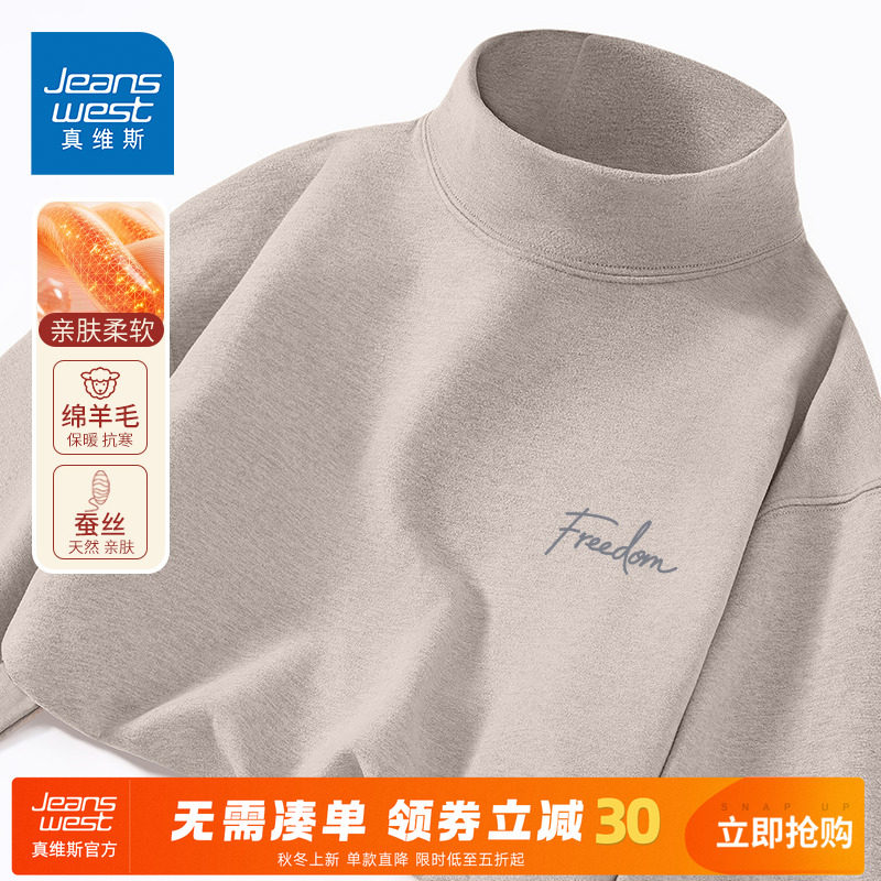 GV真维斯高领秋衣男冬季羊毛蚕丝绒保暖内衣男士加绒加厚打底衫A