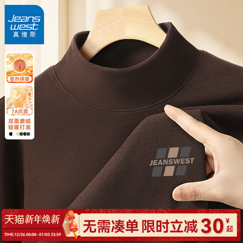 GV真维斯双面绒打底衫男士保暖内搭冬季加厚半高领秋衣男长袖t恤C