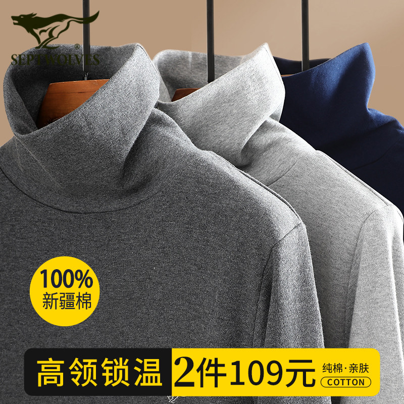 七匹狼纯棉高领秋衣男士全棉毛衫防风保暖内衣男款中老年线衣上衣
