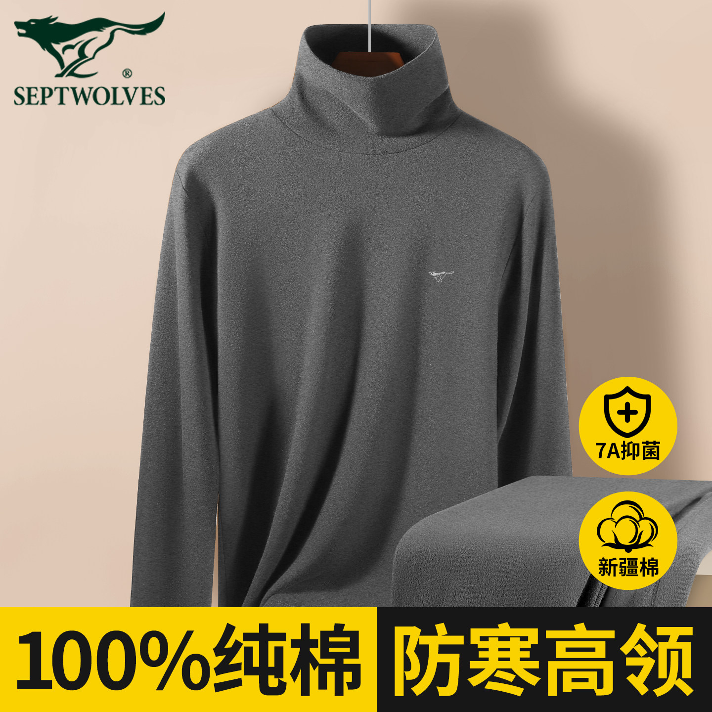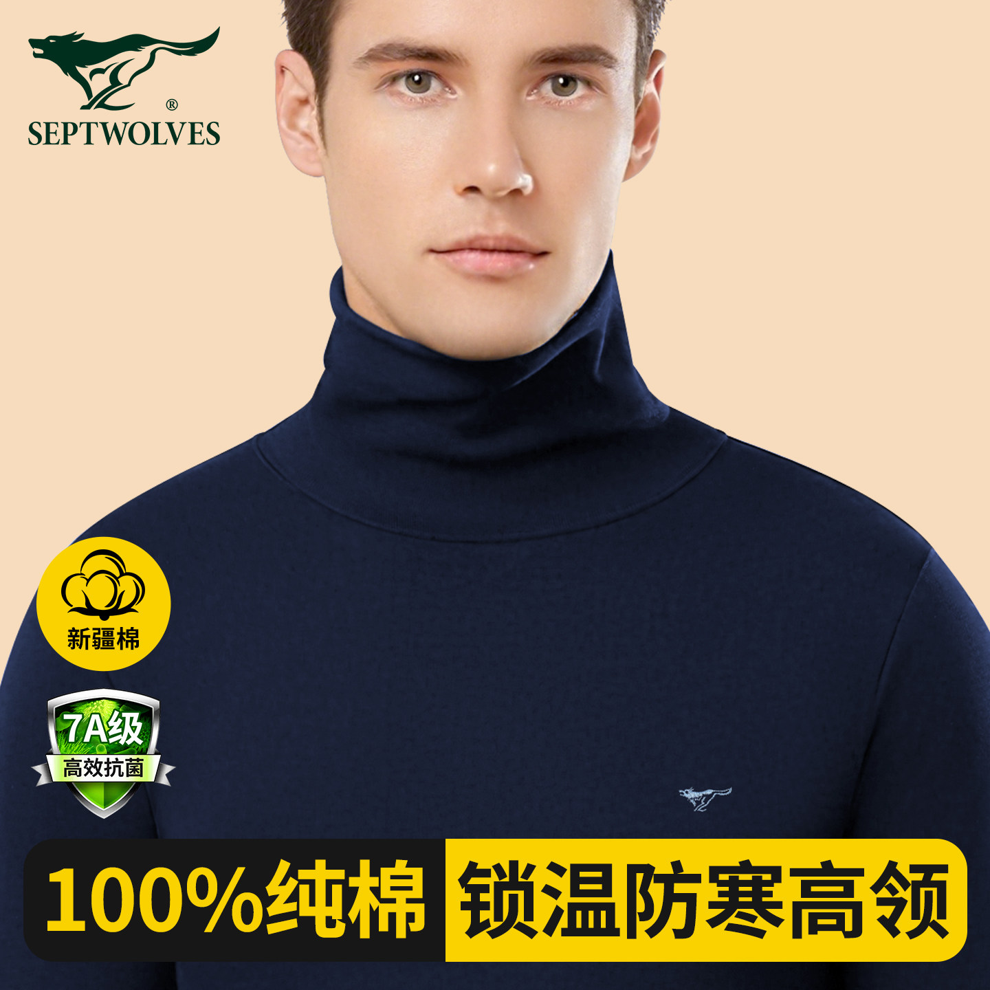 七匹狼高领秋衣男款打底100%全棉毛衫上衣纯棉保暖内衣套装男上身