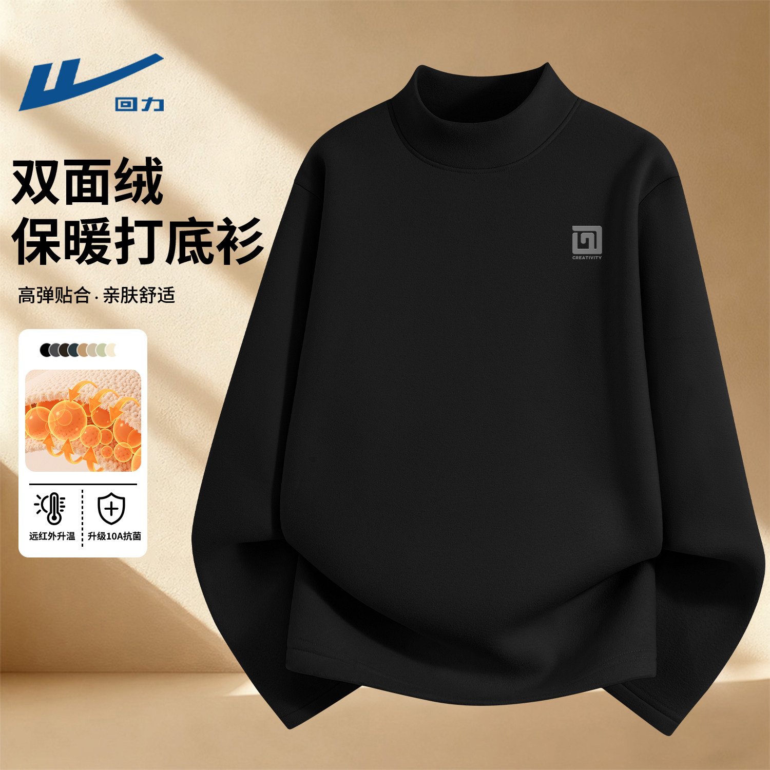 回力黑色德绒打底衫男士冬季半高领秋衣男款学生保暖长袖内搭衣服