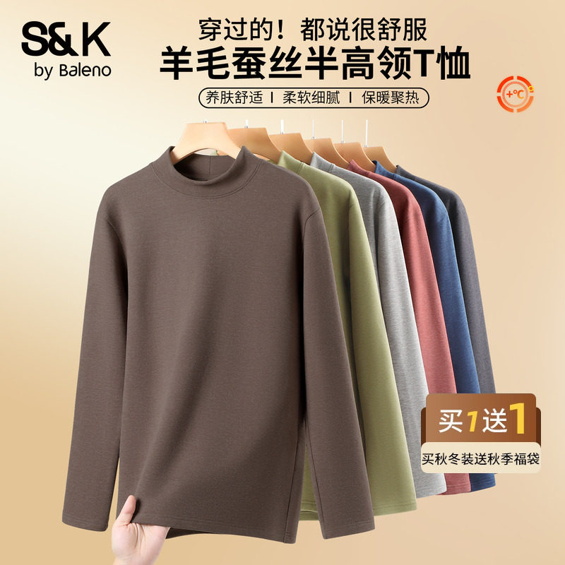 班尼路SK羊毛蚕丝打底衫男款冬季保暖半高领秋衣男士大码长袖t恤A