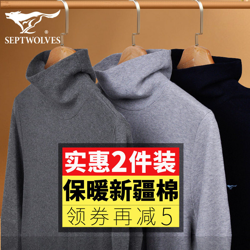 2件装 七匹狼纯棉高领秋衣男款单件保暖上衣全棉毛衫保暖内衣套装