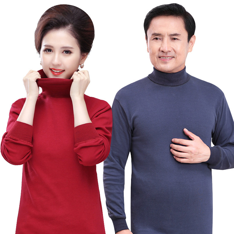 高领秋衣男士纯棉单件上衣棉毛衫女全棉中老年妈妈保暖内衣打底衫