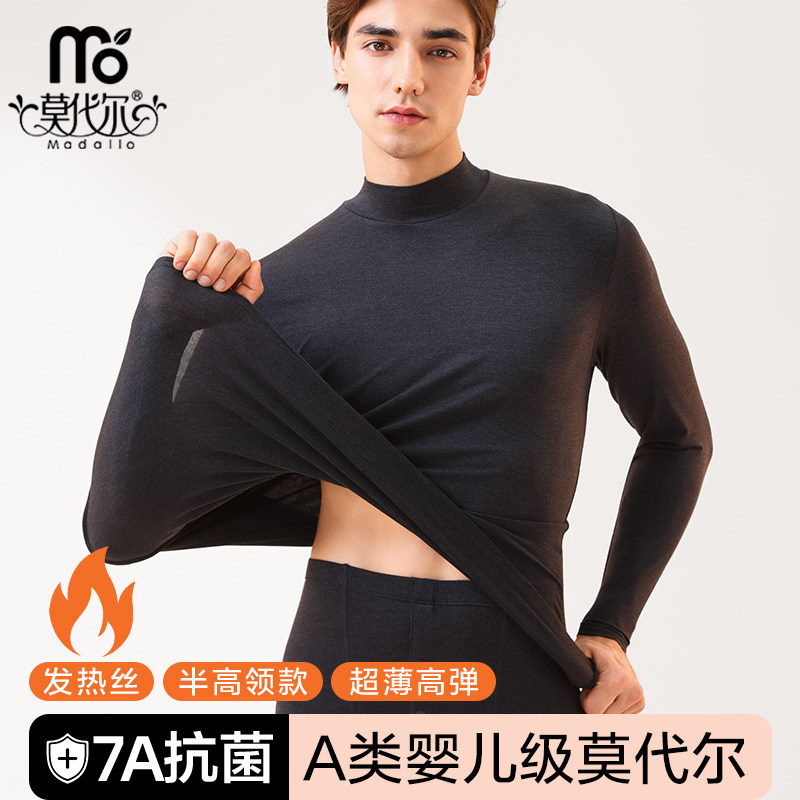 莫代尔中领保暖内衣男款上衣修身打底衫超薄发热半高领秋衣男冬季