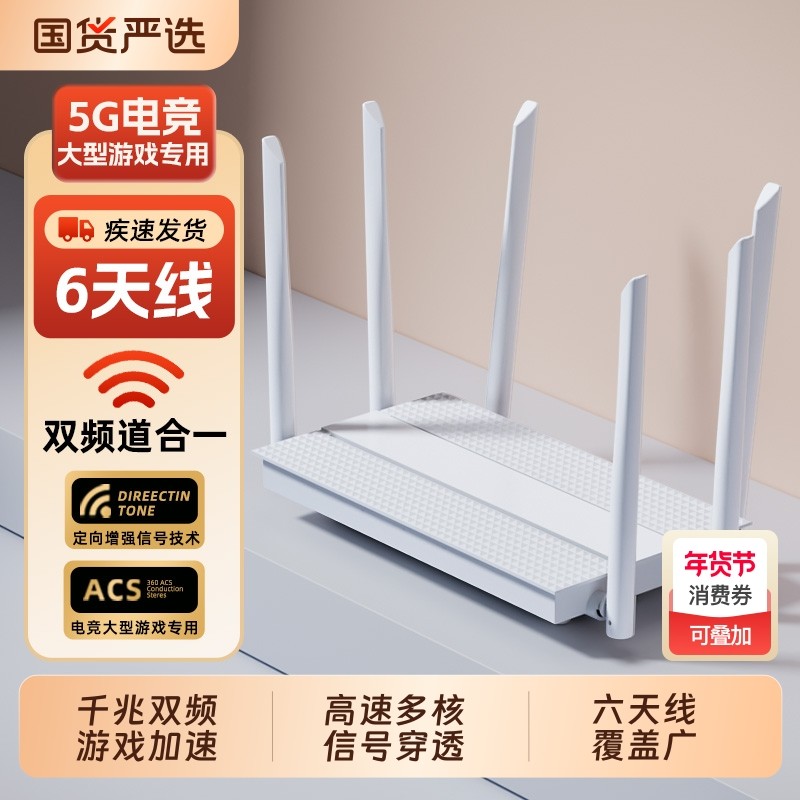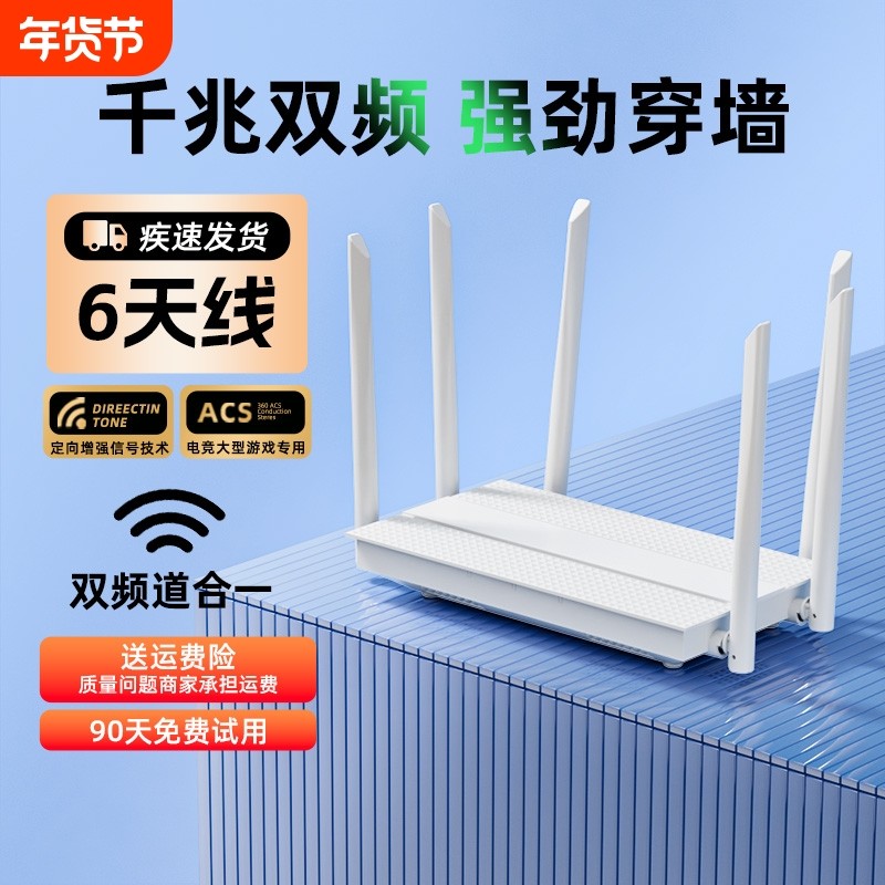 千兆家用路由器5G双频wifi6高速无线网络宽带端口穿墙王wifi信号增强电竞游戏学生宿舍大小户型专用全屋覆盖