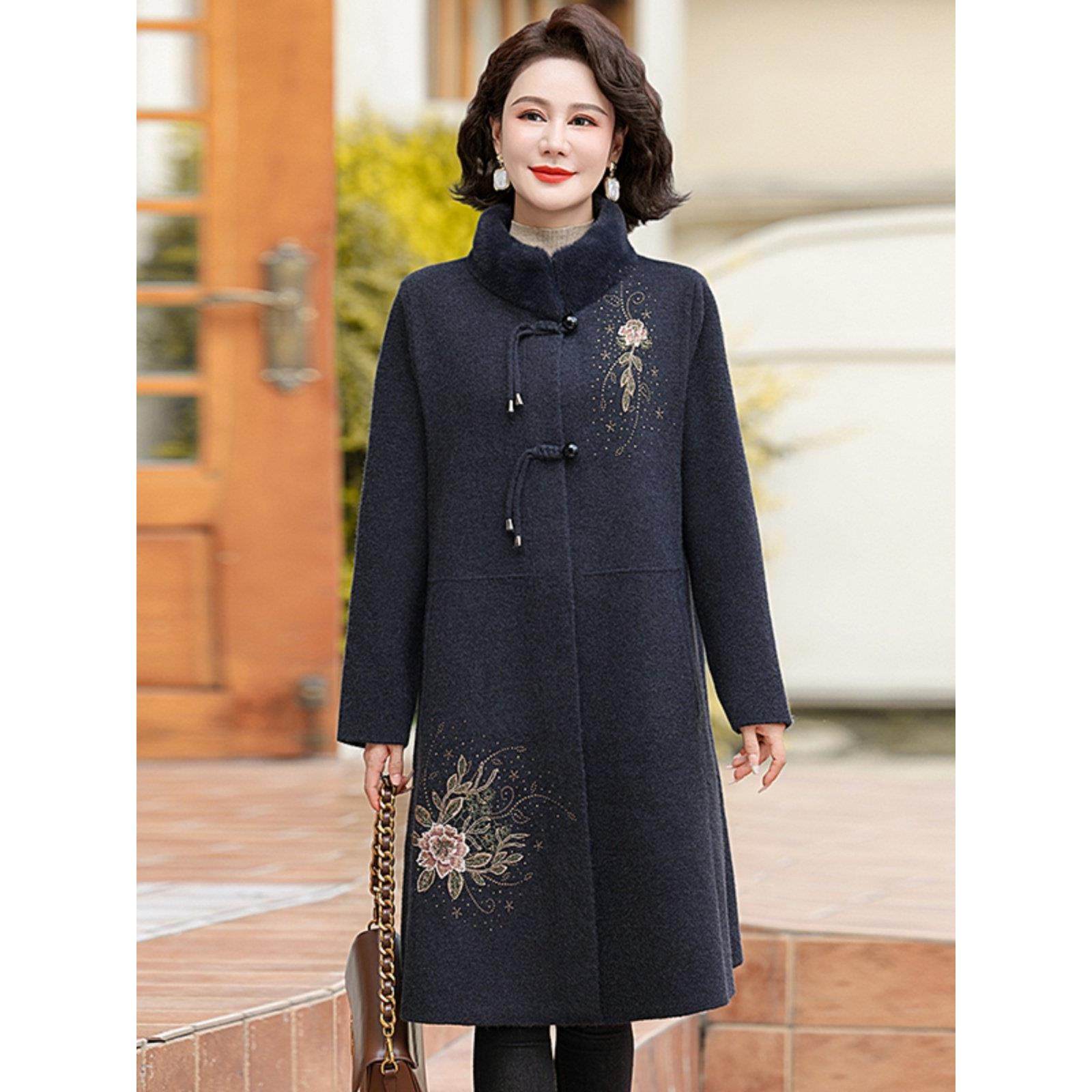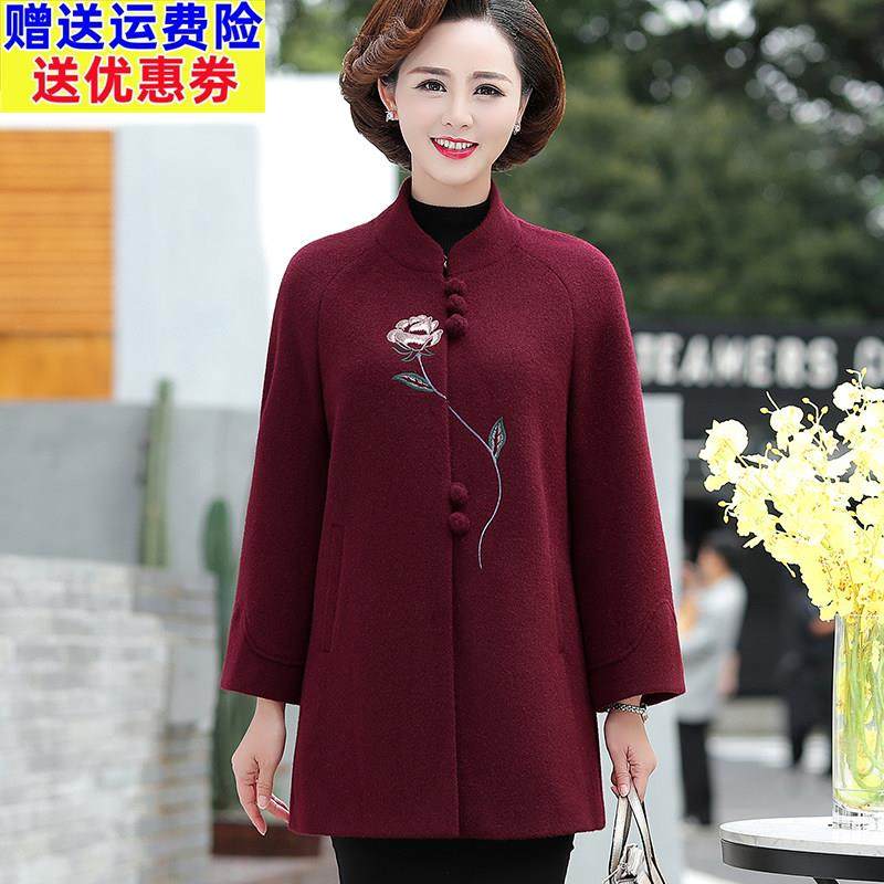 妈妈羊毛大衣中长款毛呢外套50-60岁奶奶装中老年女加肥加大呢子