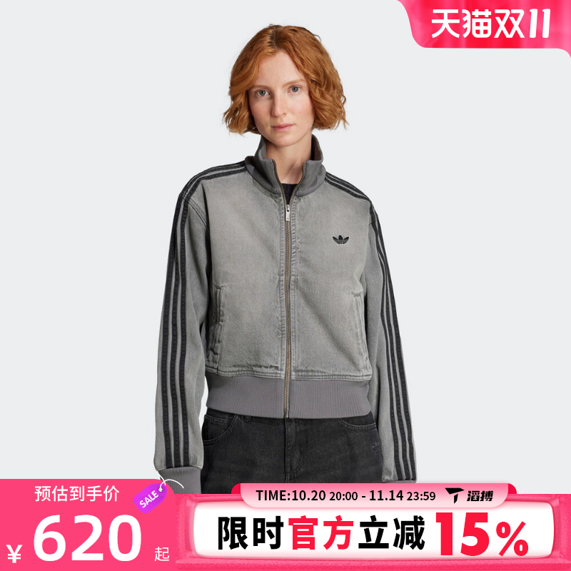 滔搏adidas阿迪达斯三叶草女子经典三条纹复古运动牛仔外套JY2896