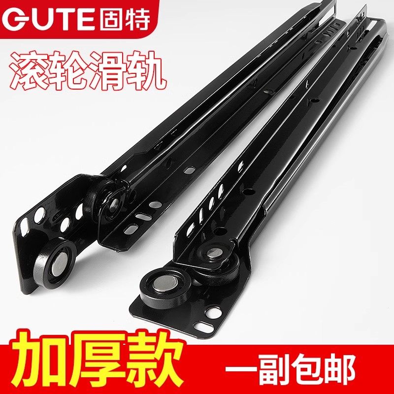 固特二节导轨抽屉轨道滑道滑轨加厚电脑桌键盘滑槽衣橱柜静音滑轮